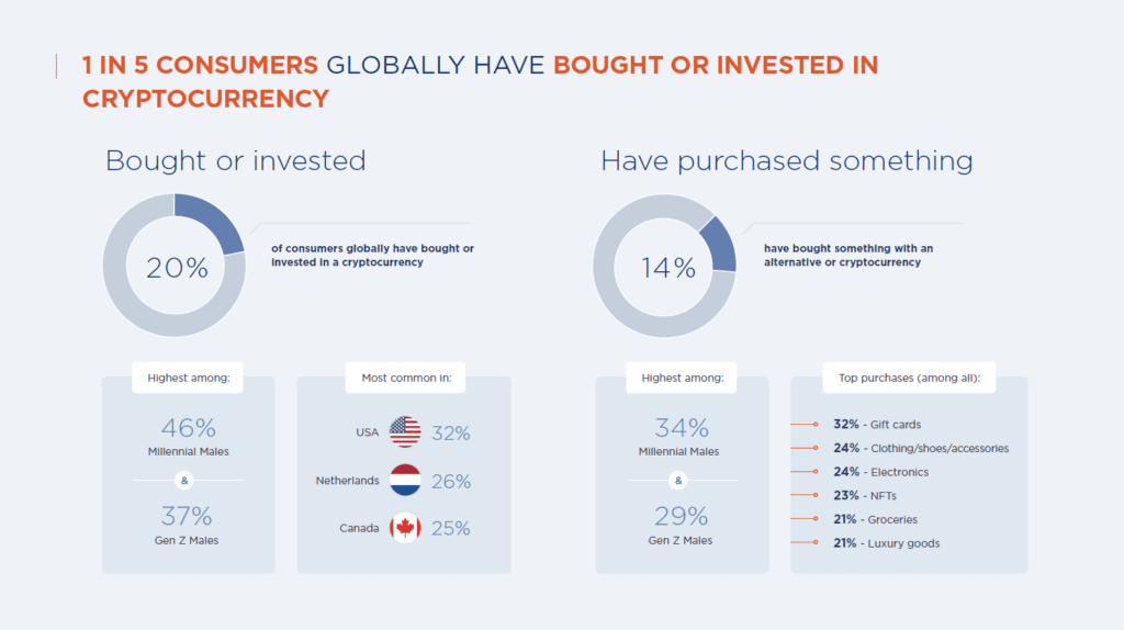 1 in 5 consumers globally have bought or invested in cryptocurrency, highest among Millennial and Gen Z males