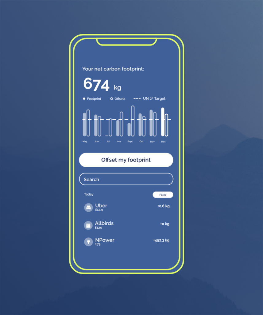 1. Se calcula que el consumo es responsable de cerca del 60% de las emisiones de gases de efecto invernadero. Al igual que muchas aplicaciones financieras, Yayzy utiliza Plaid para conectarse a la cuenta bancaria del usuario y calcula automáticamente la huella de carbono de cada compra, al tiempo que ofrece opciones de compensación.
