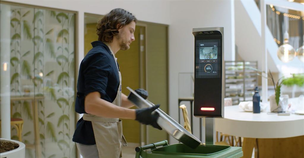 3. Orbisk tiene la misión de reducir el desperdicio de alimentos. Dirigida a las cocinas comerciales y a los hogares, su consola está pensada para colocarse encima de un cubo de basura y utiliza tecnología de reconocimiento de imágenes para registrar y calcular automáticamente la cantidad de comida que se tira.