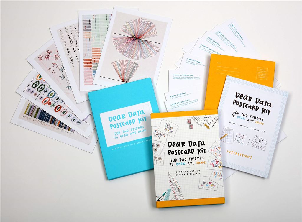 2. El Dear Data Postcard Kit -una rama del influyente libro- convierte la recopilación de datos y las matemáticas en una divertida actividad de dibujo para personas de todas las edades, al tiempo que fomenta el arte perdido de la correspondencia postal.