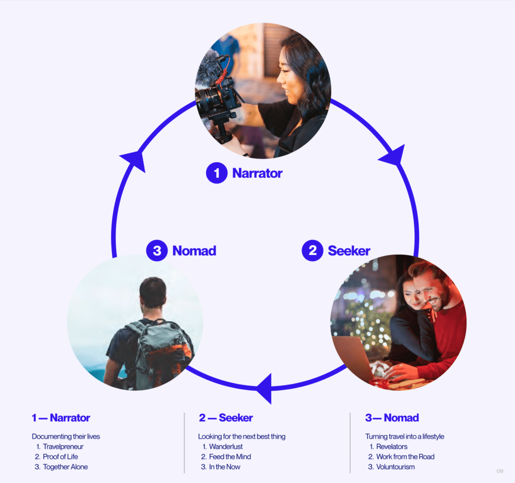 El viaje del viajero post-COVID está impulsado por la reciprocidad de los viajes. Compuesto por los tres segmentos distintos, Los Narradores, Los Buscadores y Los Nómadas, la planificación de viajes es un proceso cíclico, rico en información accionable para que los especialistas en marketing alineen sus productos y marcas.
