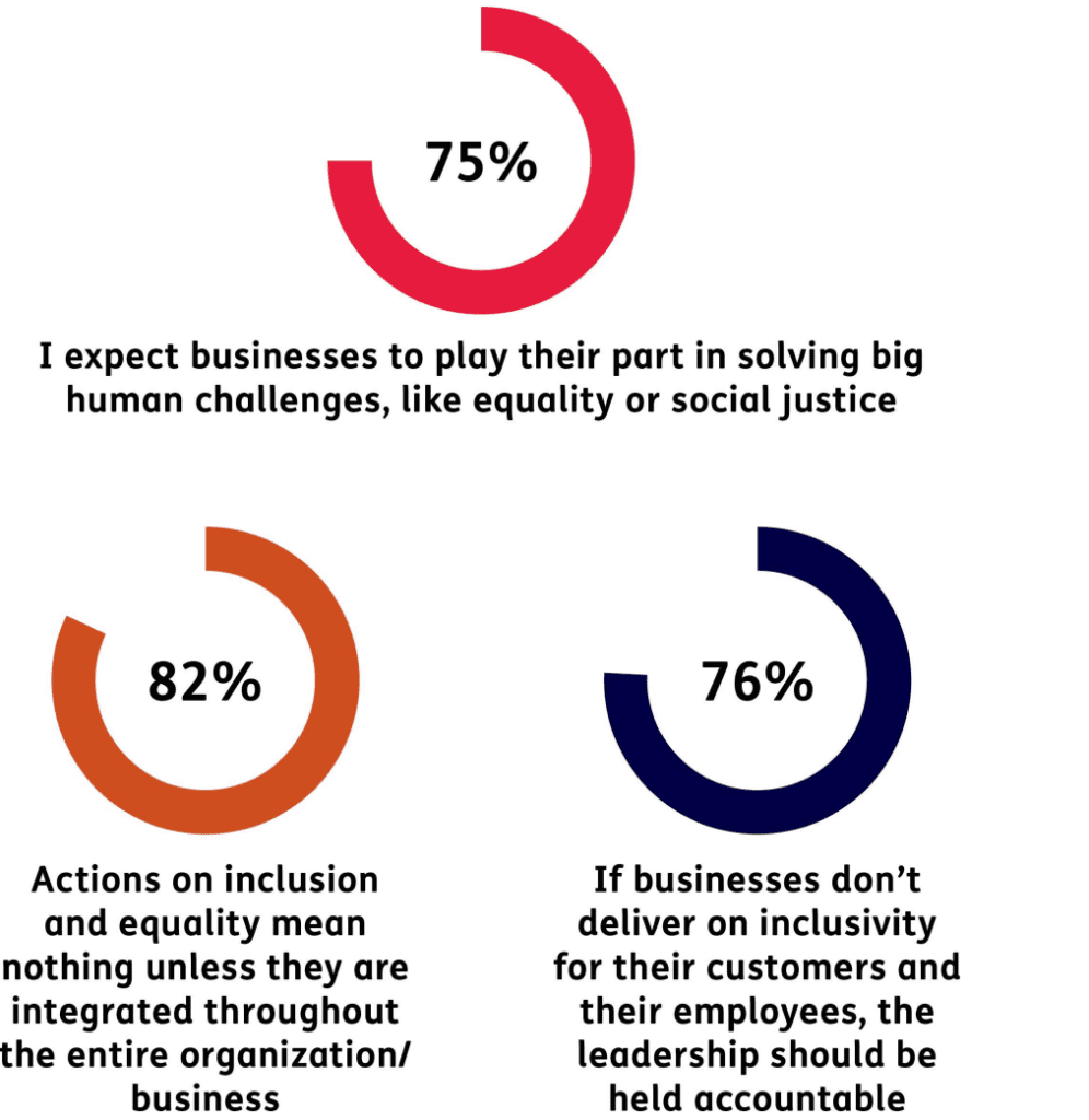 El impulso de las comunidades históricamente marginadas (que cada vez están más dispuestas a identificarse como tales) se alinea con el aumento del activismo de los empleados y las expectativas de los consumidores. En una encuesta mundial realizada por Wunderman Thompson, el 90% afirma que la igualdad es ahora un asunto de todos, y el 75% dice que las empresas y las marcas deben desempeñar un papel en la resolución de grandes retos sociales como la igualdad y la justicia social.