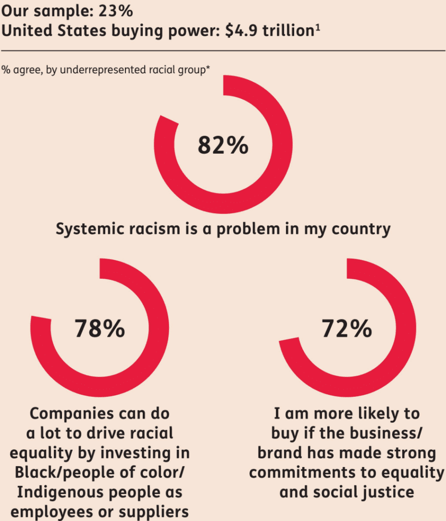 en varias industrias, destacando el problema de la infrarrepresentación en el arte, la moda, la música y el cine. Algunas marcas incluso están fijando objetivos para abordar el problema: Vans se ha comprometido a contratar y colaborar con un 50% de artistas y embajadores negros, indígenas y personas de color (BIPOC) en sus campañas mundiales.