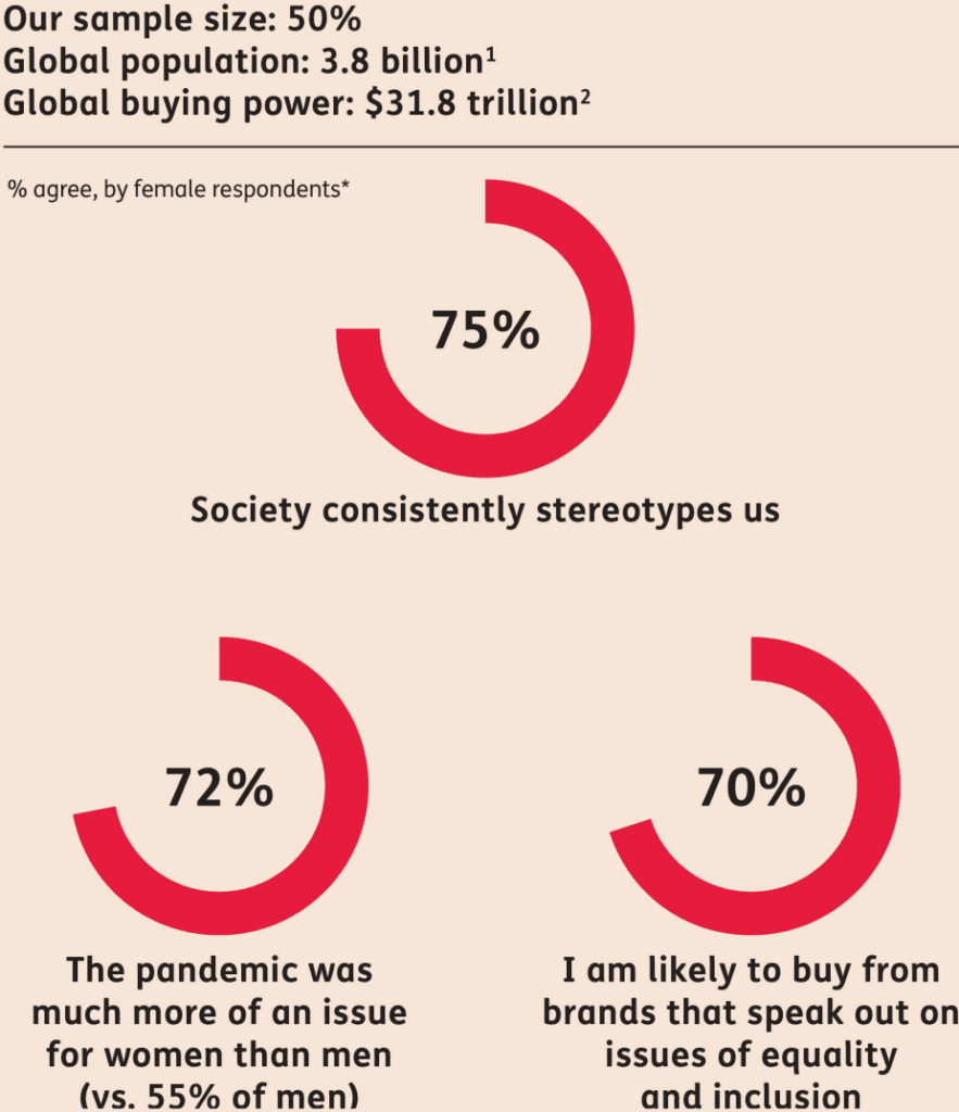 Mientras que las tendencias de consumo, culturales y empresariales fluyen en una dirección, hay mareas que empujan hacia atrás. Este sigue siendo un mundo sesgado; un mundo en el que el 86% de los directores generales de Fortune 500 son hombres blancos y menos del 1% se identifican como LGBTQ+. Los gobiernos y las instituciones están haciendo retroceder las libertades que tanto costó conseguir en una reacción contra la llamada cultura “woke”. Para cumplir realmente con la equidad, las marcas deben ser empáticas con las luchas del mundo real de las comunidades marginadas y utilizar su poder para desmantelar la discriminación y la opresión sistémica.