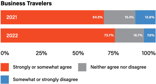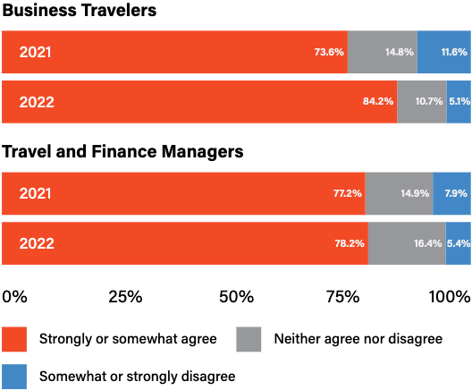 “Los viajes de negocios son importantes para impulsar el crecimiento de mi empresa”. 2021 vs. 2022