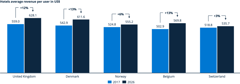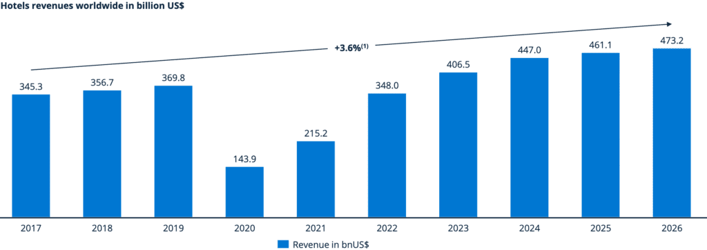Se espera que los ingresos globales en el segmento de hoteles crezcan en una CAGR de 3.6%