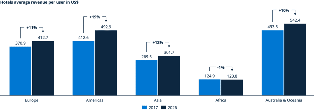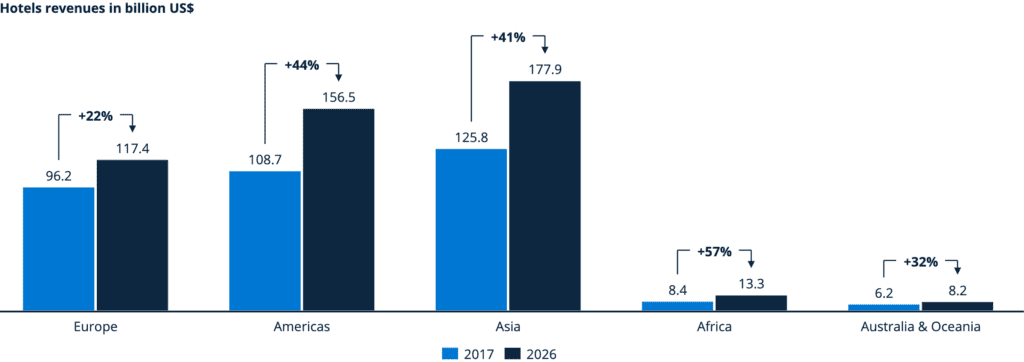 En África, se espera que los ingresos de Hoteles crezcan un 57% entre 2017 y 2026