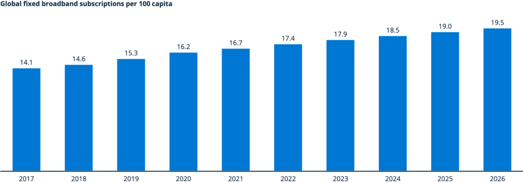 Desde una perspectiva global, las suscripciones de banda ancha están aumentando continuamente
