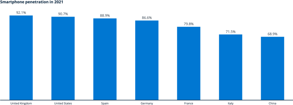 El Reino Unido tiene la tasa de penetración de teléfonos inteligentes más alta en 2021