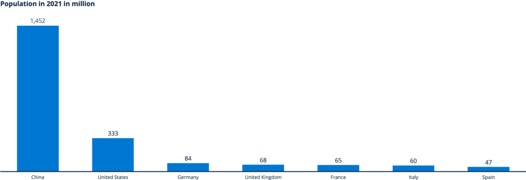 China tiene, con mucho, la población más grande y, por lo tanto, tiene el potencial de convertirse en el mercado de movilidad más grande del mundo