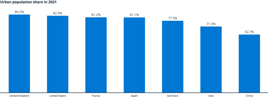 Alrededor del 75% de los europeos y alrededor del 57% de la población mundial viven en áreas urbanas